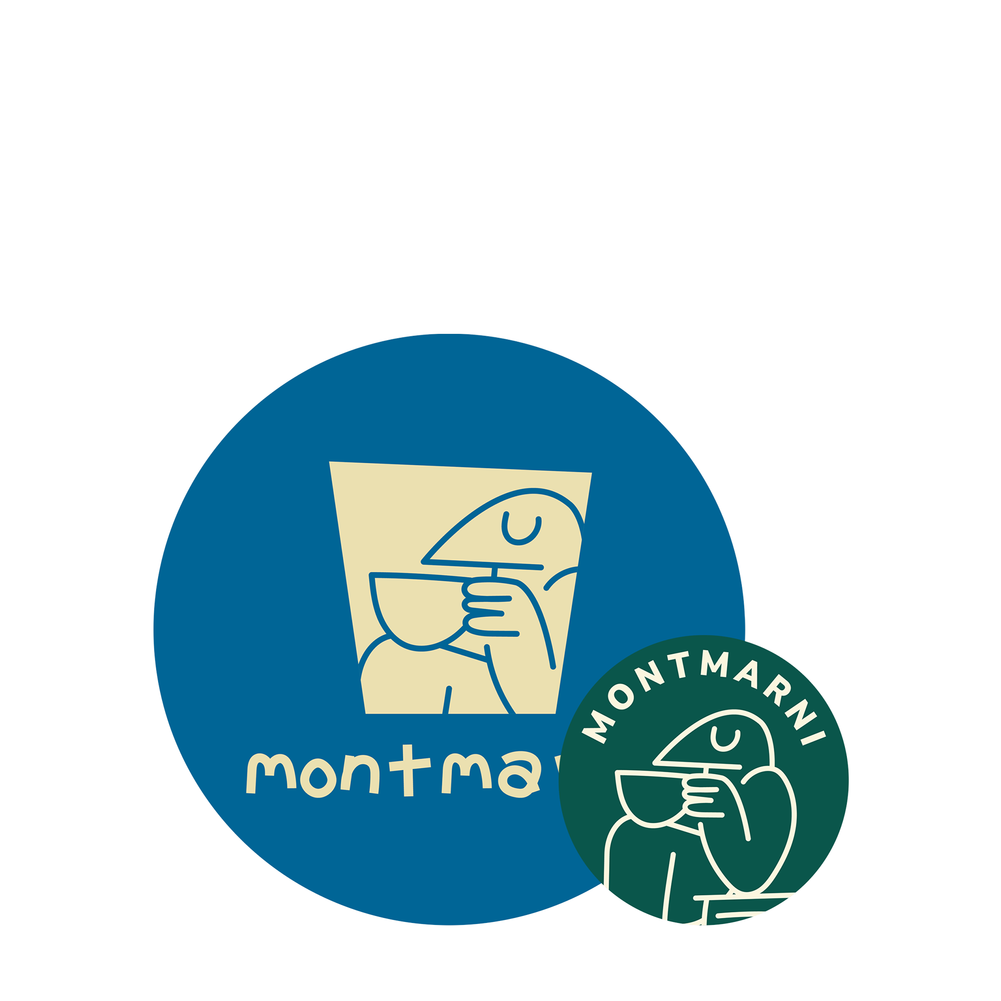 서브 로고는 일러스트와 어울리는 자유분방한 분위기의 워드마크를 제작했습니다. 이 워드마크를 비정형 형태의 컵 안에 배치하여 "몽마르니"가 단순히 조용히 공부하는 장소가 아니라, 휴식과 모임이 공존하는 공간이라는 이미지를 극대화하고자 했습니다.